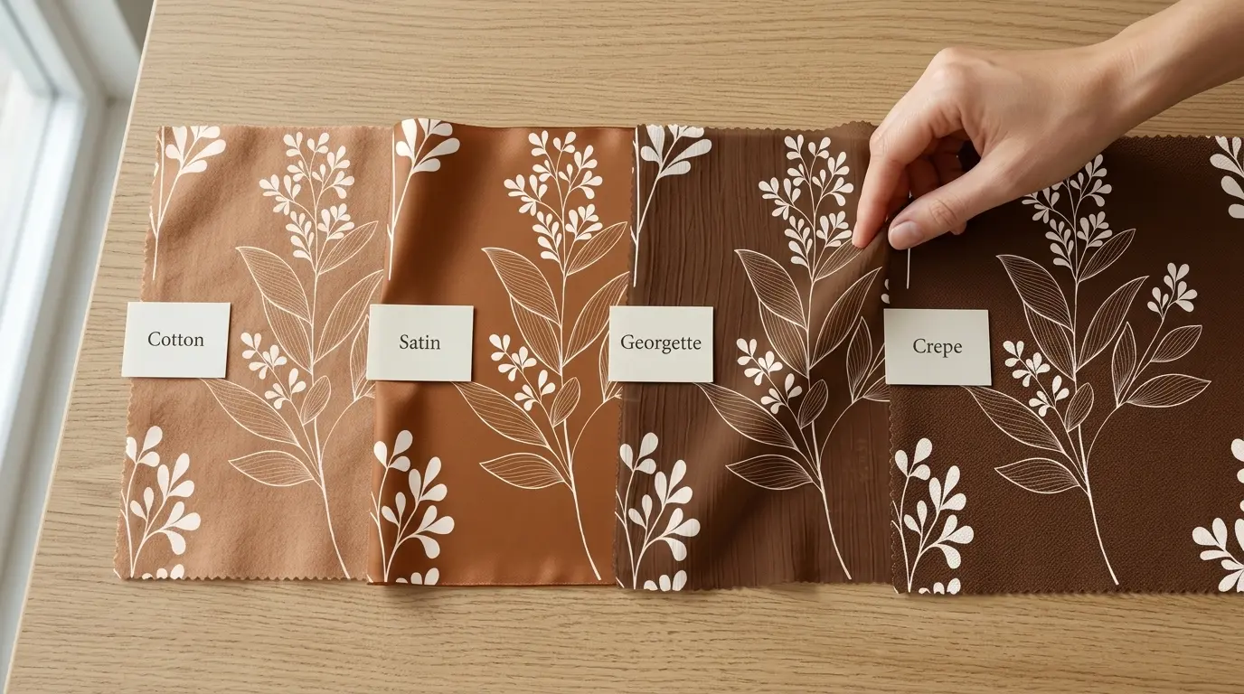 Each fabric type handles digital prints differently. Smooth, tightly woven fabrics like satin and poplin produce the sharpest, most vibrant prints. Textured fabrics like crepe and linen give prints a softer, more organic appearance. Neither is better. The right choice depends on the visual effect you want.